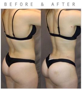 Fat is harvested from all of your stubborn areas using a suction cannula. The most common areas for fat removal are the stomach, flanks, bra fat, arms, and thighs. The fat is collected into a sterile container, processed, then injected into the buttock to enhance its projection, lift, and to combat those hip dips.